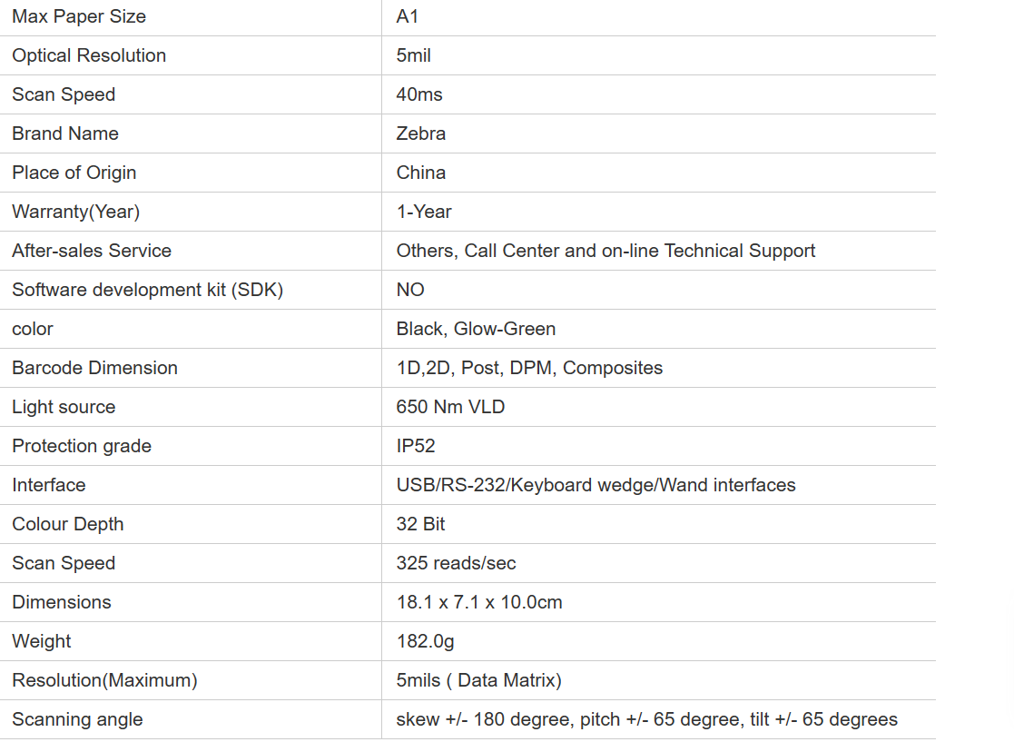 The well-proven ergonomic and lightweight balanced design provides maximum comfort,even in the most scan intensive environments. The result Reduced user fatigue and increased worker productivity.