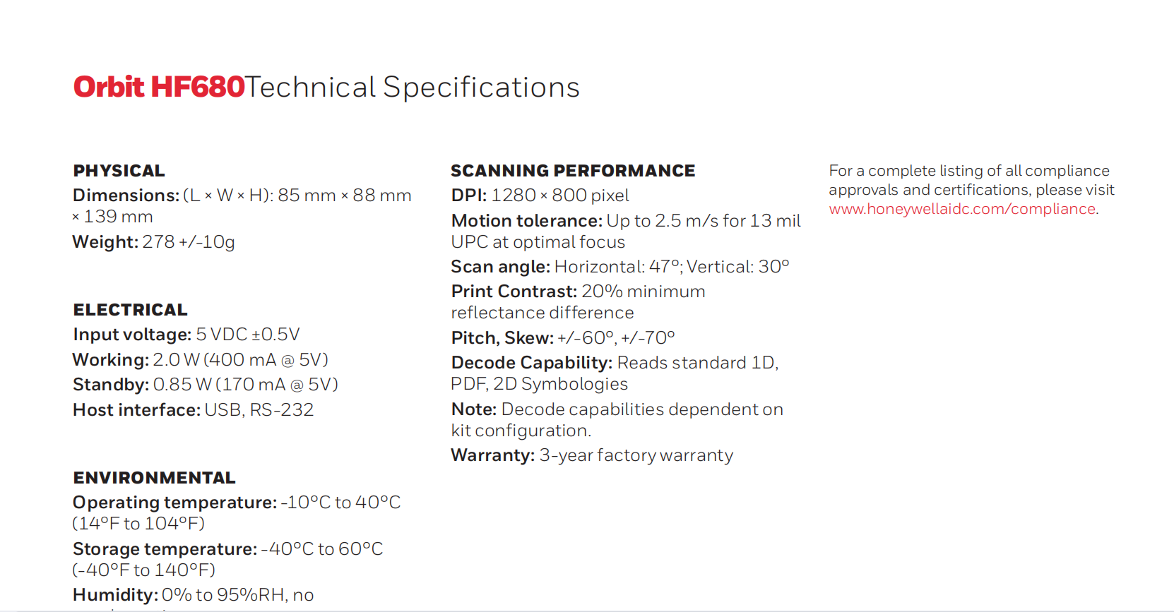 With the Orbit HF680, retailers no longer have to compromise their budgets to get performance and a modern design. Get it all with Honeywell’s Orbit HF680.