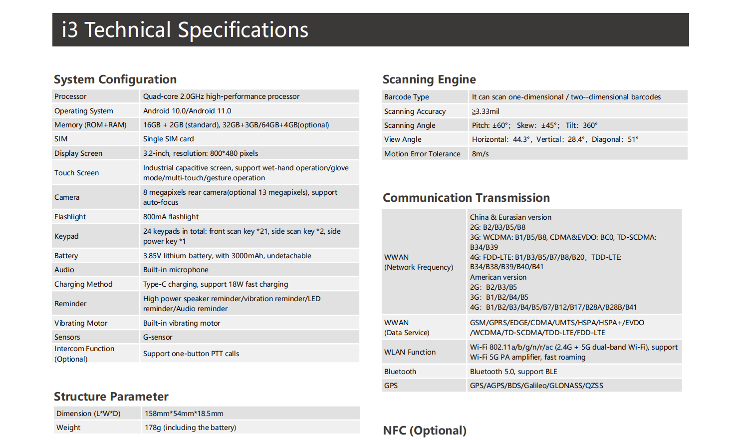 Small as it is, i3 is a multifunctional device that can scan, take photos and equipped with 4G network, Wi-Fi and Bluetooth. The workers can apply i3 to inventory, order fulfillment, and take photos as proof, etc. Besides, i3 also enables them to talk to each other through voice communication, increasing the collaboration of a whole team.