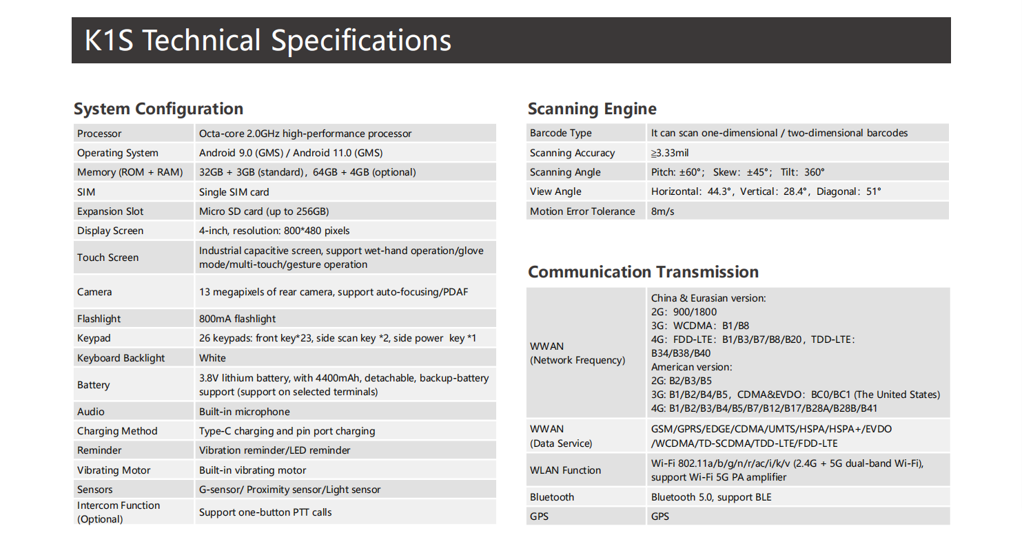 Equipped with iData’s self-developed scanning engine, K1S can easily scan damaged, dirty, DPM barcodes, etc. The breakthrough Wi-Fi roaming technology, as well as the 5G PA amplifier, enable a better network experience in complex environments.